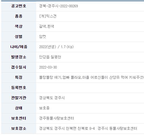 22/3/31_유기견 입양 소식_경주