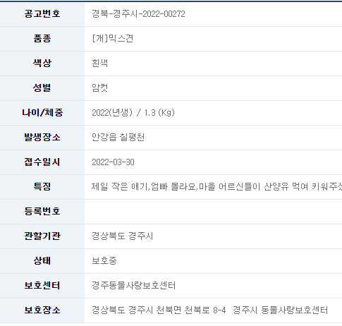 22/3/31_유기견 입양 소식_경주