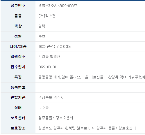 오늘도 새로운 가족을 기다리는 유기견들이 많이 있습니다.